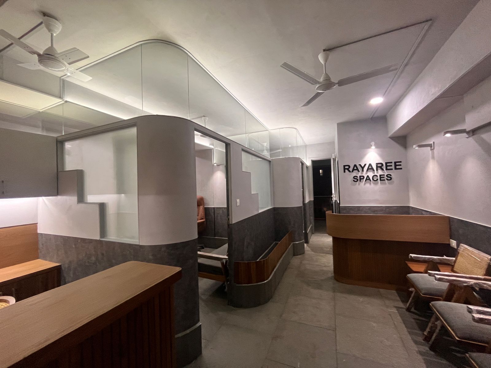 An office space that reflects sophisticated fusion of modern precision and cultural narratives within the heart of the commercial district