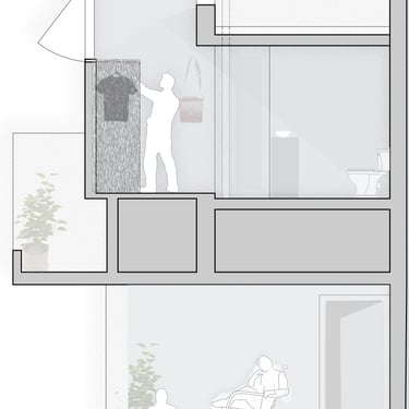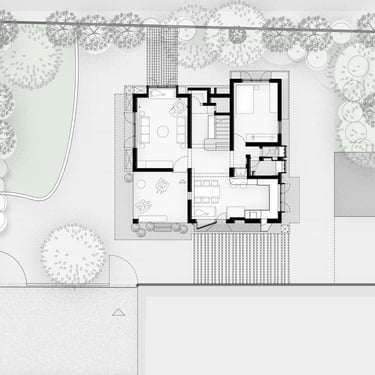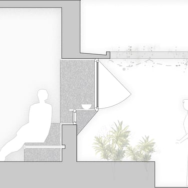 Situated on a corner plot within a gated community, the house emphasizes inside–out connectivity through thoughtfully placed windows, blending privacy with openness. As the family transitioned from eight to three members, the home was reorganized to create visually connected spaces that foster togetherness. The dining area emerged as the central hub, hosting festivals and daily activities, while architectural elements within the space served multiple purposes—functioning as seating, resting areas, and alcoves. Outdoor elements as seating and bay windows blurred the boundaries between inside and outside. Originally limited by low lighting, the design embraced adaptability and multifunctionality. The corner expansion, housing the washroom and dressing area, now forms the first impression upon entry.